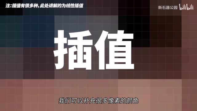 图片中的每个像素现在变成了十六个。如果你不做任何处理,他就可能是这样的这不是你想得到的结果是。你决定给这些像素重新添加一下颜色,该怎么做呢?最容易想到的办法就是把相邻的两个像素的颜色值相加一下,然后除以二,于是你就得到了一个新的颜色。电脑也是这样做的,这种算法就叫做差值。利用差值算法我们可以补充很多像素的颜色,让像素过渡起来更自然。但是简单的插值方法会导致边缘均匀过渡,看起来很模糊,和实际人的主观感受不符。很明显锐利的画面需要像素值上更陡峭的过渡,你这样一平均,边缘反而变得更模糊了,怎么办呢?如果修复图像的是人,我们可以自己手动来精修。