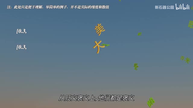 在高维度的坐标系里,我们就能够更多的通过空间关系理解每一个人的特征。词语也是一样的,只不过它更抽象,表示它的维度也更不容易被总结出来。但请你相信,如果我们把它们同样放在一个很高维度的坐标里,那么你就会发现意义相近的词语,它们的空间可能就会更近。比如美和大,可能从雌性维度上它们都是形容词,从贬义褒义上它们都是褒义,从使用场景上他们经常一起出现。因为总有人说大就是美大就是美。当然还有各种我们猜测不出来的维度,所有这一切维度让他们在一个高维坐标里处在了比较近的距离。除此之外,因为向量是可以计算的,就像我们普通的数字一样,我们可以相加、相减和相乘。当我们把词语放到向量空间中后,我们发现神奇的事情发生了。