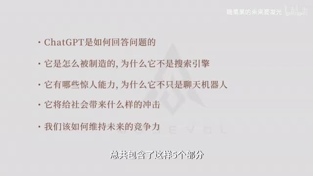 它里面没有任何的专业术语,讲解了chat g p t到底是如何回答问题的,它有什么惊人的能力表现的。为什么它不只是简单的聊天机器人或者是搜索引擎?那这个视频呢总共包含了这样五个部分。我最开始排斥ai就是因为觉得唉,它不就是一个搜索引擎或者聊天机器人吗?但是看完这个视频之后,我才真正的对ai产生浓厚的兴趣。如果你觉得这个是五十分钟的视频有点长了,那我推荐第二个视频。