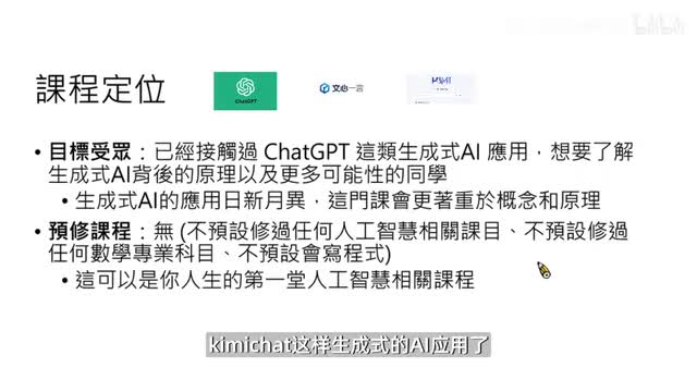 而且李弘毅老师在讲这个课的时候,里面引用了很多新的论文观点,有的甚至是几个月几周前新出来的那李宏毅老师其实最开始是出了那个机器学习的课程,据说他的机器学习课程呢是众多老师中最被推荐,而且是最通俗易懂的。这个课的课程定位就是你已经用过一些像chat g p t啊、文心一言、kim i chat这样生成式的ai应用了。但是呢你却想要了解这些a i后面的可能性。这个课程的授课对象呢仅仅是你使用过这些a i不预测你学过任何a i的课程,或者你会写任何代码,也是很适合新手小白的那这个课呢就比吴恩达的这个课长一些,每节课呢有三十分钟会讲十八次,还有十次的作业,这个呢会更加考验你学习的耐心。