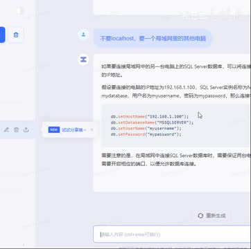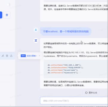 另一方面呢,它有个聊天机器人,呃,可以问一些比如说你一些函数啊怎么使,直接就给你一些实例代码。嗯,比如这个我问他这个add this space,他又把这个老老一套也拿过来了。其实我想问。呃,如果不要用local host,在一个局域网里呢,它指定了这一个。