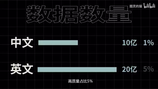 这里做个不太严谨的推算,假设中文文本数据有十一条,高质量数据占比百分之一。中文文本数据二十一条,高质量占比百分之五。过滤后可用于ai训练的数据,中文就只有一千万条,而英文有一亿条。这个量级的差距确认出的a i是截然不同的。