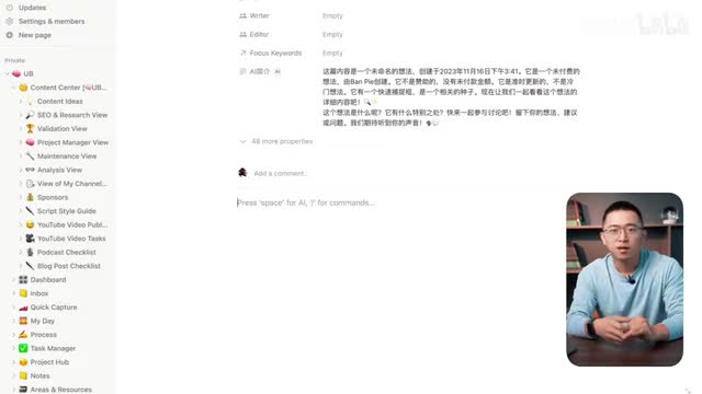 所以我在notion当中怎么做呢?我直接输入空格来开启一个a i然后把选题的题目输进来。然后整个指令输完之后,我们整个文章就开始写了。那写完的时候我其实直接用手机打开截图,然后把这个截图就直接上传到小红书。就那第二种比较可靠的方式就是a i直接做思维导图。那你会看到其实小红书很多的爆款的笔记也是用这种导图的方式。