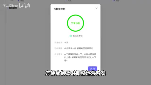 里面呢除了基本的阅读、点赞、收藏等等这些数据以外呢,下面的优化建议还可以通过a i来进行数据诊断,方便我们及时的调整运营方案,非常的贴心。好了,那以上就是我本期视频的全部内容了。相信未来的a i创作将会成为每一个媒体人的基础技能。