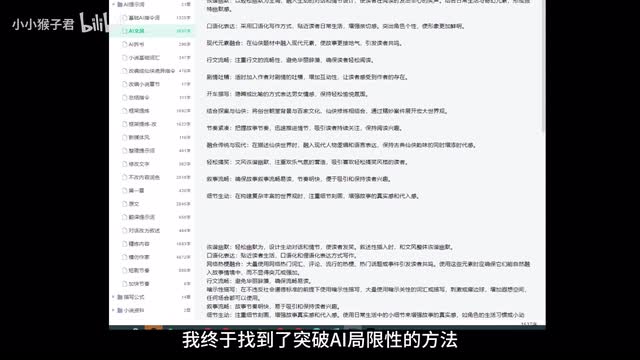 这也限制了我批量生产小说的效率。如果你也对ai写小说感兴趣,欢迎来和我交流,我会把我这半年整理的资料和经验分享给大家,让我们一起研究如何攻克节奏难题,让ai写出更精彩的爽文。相信通过大家的共同努力,我们一定能找到让ai写小说节奏更快的秘诀,实现a i批量生产小说的梦想。如果你想要我的提示词指令,请在评论区留言或联系我,我会分享我的学习资料。最后悄悄的告诉你,本视频文案也是由a i提供的哦。