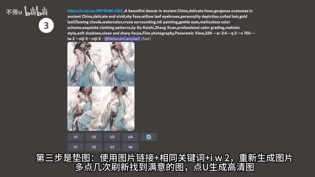 演示下操作流程。第一步是关键词生成满意角色选图一作为电图。第二步是点击图片,右键复制图片链接。第三步是电图,使用图片链接加相同关键词加i到的流重新生成图片,多点几次刷新,找到满意的图,点击生成高清图,点图的内容讲解完了,再看第二个c值微调。使用c值和微调图片中的部分细节。