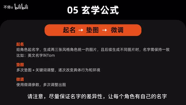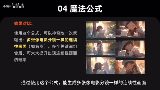 二次元和插画风格也可以实现连续效果,但是概率较低,建议最好使用离g五。如果效果不理想,可以结合电图加c加微调参数进行调整。魔法公式讲解完了,大家可以去尝试做个动漫视频哦。最后一组玄学公式技巧为什么叫它玄学呢?因为就像对待自己的孩子一样,需要给图片起个乳名。了解一下玄学公式的三招。