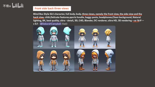 但是生成的人物跳跃图片中有的动作是三个人物,有的却是一个人。明显不符合四个连续动作的要求。接下来再看三视图的关键词指令图片比例为十六比九,生成的图片有的符合中三视图要求。可以再多刷新几次,找到最满意的一组。如果三世同命令在三比四或九比十六比例下可能会失效。