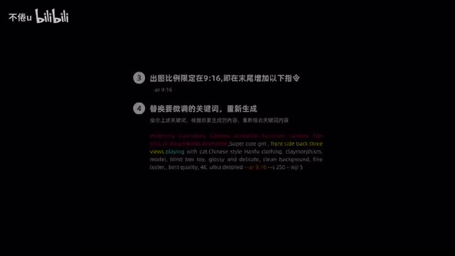 第三步,出图比例限定在九比十六,即在末尾增加比例参数。第四步,替换要微调的关键词,也就是图中有绿色的字体退役。根据自己要生成的内容,重新组合关键词即可。多个关键词组合后,可大大提升出现连续性画面的概率。生成的图片比较小,放大看看画面的连续性,是否有故事感了呢?如果一次未生成连续性画面,反复多揉几次即可。