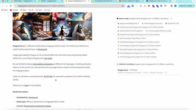 那同样的我就能得到一个更好的分数,他想成为这个行业标准的一种制定者。啊,所以我们可以看到playground l a的潜力、野心以及它的产品能力都是很大的。啊,甚至我现在觉得stability ai有一些些后继乏力啊,有一些些后继发力。啊,我们来看一下啊就是。像这样的一个赛道啊,playground的这样的一个东西,它到底会走多远啊,我还个人还是非常非常期待的,好吧,我们来拭目以待啊,这是第二个呃模型。啊,那第三个就是论文啊,最近这个论文出的实在是太多了,就是多到有点看不过来啊。