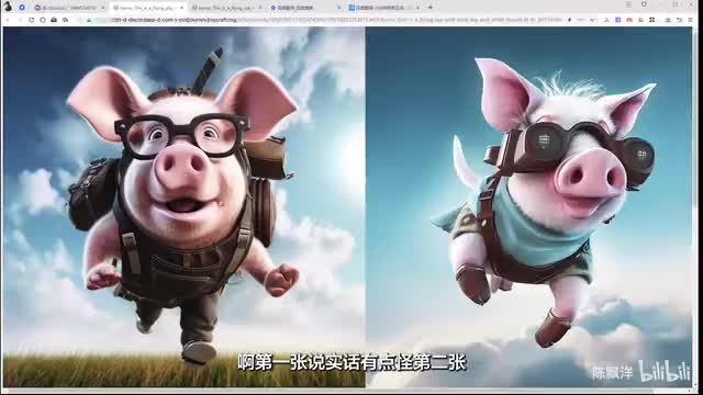 生成里面就。复制进去,然后回车。让我们看一下,我们把主体猫替换成猪之后,它会生成什么样子的一个状态。我们可以看到它这边的话已经在开始生成了百分之四十六,那我们就等他百分之百就可以了。好,完成了,我们点开看一下。