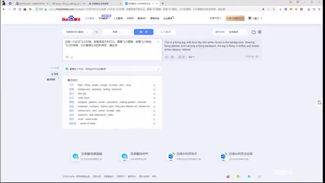 也就是传说中的。百度翻译啊。百度翻译。那么我们直接使用百度翻译就可以了。把中文打进去,然后翻译成英文,然后再输入到我们那个对话框中就可以了。