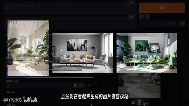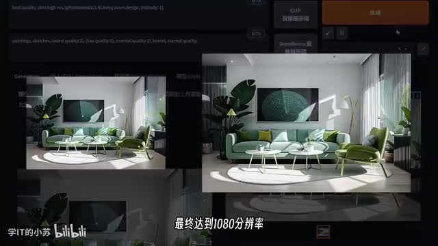接下来我们演示一下如何制作室内效果图。首先我们选择一张室内效果图并将其放入control net中,接着选择i p r doctor进行适配,然后调整图片参数和更换大模型,最后直接点击生成按钮,可以看到生成的效果图风格非常接近原图。当然这个拿来直接使用还有一定的距离,所以我再添加一个图作为构图参考,选择dep深度图模型。