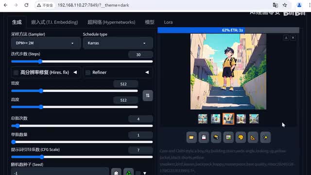 loa模型这里我们就将这个新海诚的动画风格添加上去。然后将它的权重适当降低一点。接着我们点击生成。可以看到这些loa生出来的效果图都是很不错的。我将sb整合安装包以及漫画助手插件,各种动漫类型的模型都已经整理好放在网盘中,有需要的小伙伴们可以在评论区留言领取哦,我会一一回复大家的。