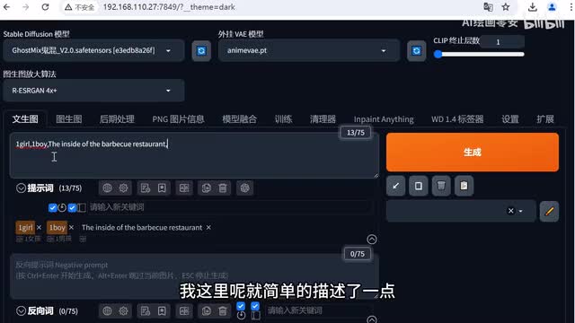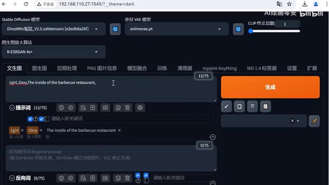 这个洛阮模型也是可以跟真人模型适配的。选择完成之后,我们来到提示词部分。