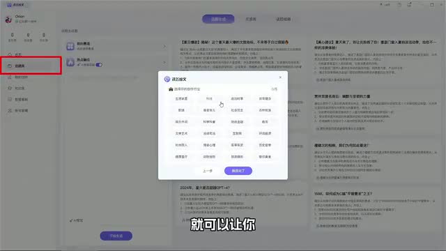 如果你也想知道ai是如何生产出一篇文案的那就跟着我一起看下去吧要写出一篇好的文案,第一步就是选题了,一个好的选题不仅能让大多数新手文案保持良好的精神状态,还能让你避免被后期毒打。而讯飞绘雯的选题库功能,就可以让你免遭这种心灵和肉体的双重折磨。在讯飞绘文选题库中,我们可以通过选择赛道,让a i从各大网站中捕捉热点,并且通过在对话框内输入内容,再让它进行抓取,这样ai就会结合当下热门话题为你提供创作思路。