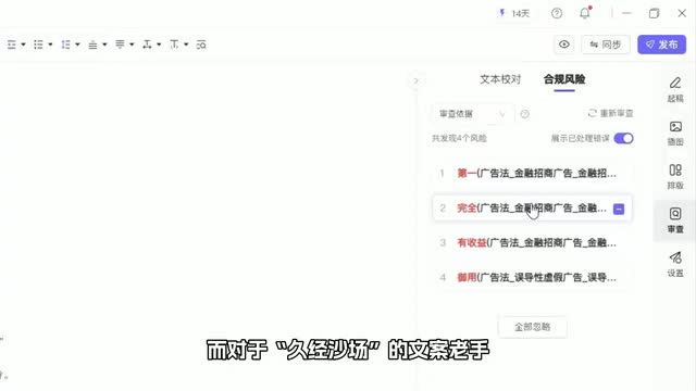 总的来说啊,讯飞慧文无论是从易上手程度,还是从小工具的实用性来说,都很适合新人创作者寻找灵感快速上手。而对于久经沙场的文案老手,他也可以分担审核校对这类繁琐的工作,并其可以专注于文章内容的创作。可以说啊对比起市面上传统的a i写作软件,讯飞绘雯更加垂直也更加专业。