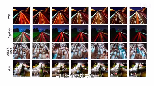 在生成质量方面,呃,magic video相较make a video也毫不逊色。比如夜晚川流不息的高速公路,busy freeway at night啊,仔细看magic video生成的内容更加真实且细节更加丰富。when i spent a least来看moon valley,它也是一个文本生成视频的生成式ai模型。呃,用户加入discord服务器即可免费使用并获得实时支持。