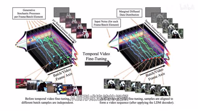 dream moving还可以按照动作序列,也就是前面说的post sequence,基于风格化的图像生成一段视频。现在看英伟达,二零二三年四月,英伟达以及慕尼黑大学等的研究者推出online your late ends,利用潜在扩散模型低能耗生成高清视频,团队将预训练的图像扩散模型转化成视频生成器,经过微调从而形成连续的视频。二零二三年八月,英伟达又和马里兰大学等研究者推出视频生成模型puco,全称是preserve your own correlation,其架构由四个网络组成,包括一个基础模型和三个上采样模型,也就是sampling,能够以极低的算力需求生成高清连贯的视频。与make a video和imaging video的比较显示,pilot生成的视频更具真实感。