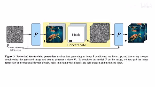 二零二三年十一月meta推出e u video,这是一个基于扩散模型的文本到视频生成模型。生成过程分为两步,首先根据文本生成一个图像,然后根据文本以及前面生成的图像生成一段视频。这样模型只需结合文本预测图像未来会如何演化就可以了。在训练数据算力和可训练参数量相似的情况下,imi video的表现要优于文本直接转视频的方法。
