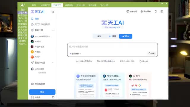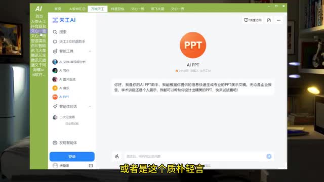 比如讯飞火星,我们打开它就可以访问里面的绘画大师啊,或者是写作助手,或者是朋友圈文案,这些都是可以使用它的ai工具的,包括天工a i我们可以使用chat g p t对话a i文档a i p p t制作,或者是这个质朴轻言,都是可以进行免费纺免费访问和使用的。还有文心一格,这里面有着非常多的ai绘画产品。这款软件最主要的特点,它就是可以输入很多a i工具,然后更加方便我们通过这款软件去进行使用。