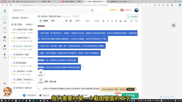 最主要的是软件非常简洁,不像一些其他的翻译软件都会有广告。然后再给大家演示一个场景,就是我们需要对某一个截图里面的文字。进行提取,这里百度文库为例吧。我现在想对这段文字进行提取,我们点击复制的按钮可以看到它会要求我开会员。