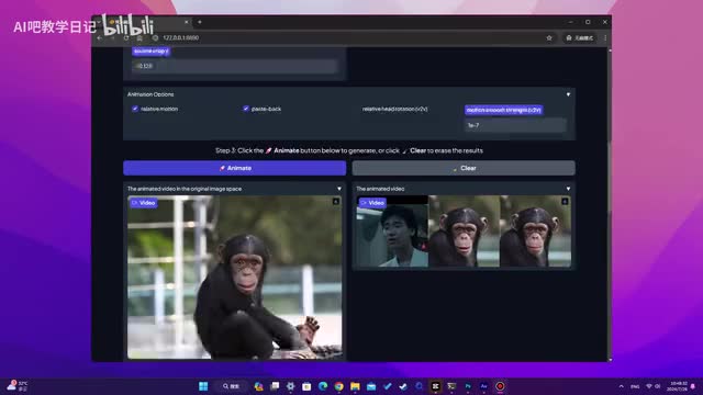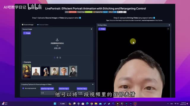 搜索a i吧网站,从网站的a i导航栏目找到live process下载一键安装包,下载解压后,双击打开目录下的运行bug文件命令行界面。稍等片刻,浏览器会自动打开y b u i,在右侧上传用于驱动的原视频,左侧上传一张图片或者是视频。