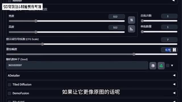 默认生成出来的结果是这个样子的。你可以看到画面变化得非常厉害,甚至可以说已经和原图没有什么关系了。那这个是因为我们的图片会经过一次s d web u i的图生图,然后再来到animate dif里面去进行视频或者连续图像的生成。当然你也可以通过参数的调整让它更像原图,不过也会带来一些问题,就是几乎不怎么动了。但是咱们还是说一下吧,如果让它更像原图的话呢,当然也就是这边的重绘幅度可以调低,但是也不能太低,太低的话那就彻底不动了。然后还有就是在animated deep下面,你会看到这里有一个i to v也就是image to video traditional。你把它点开,点开的时候你会看到这里有一个lantern power和一个lantern style。那这两个参数,那这里的power越小,scare越大,就会使我们的视频越贴近原图。