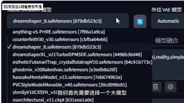 ok那把模型安装好之后呢,现在我们的animated def最基本的安装就已经完成了。接下来我们就可以来。正常的使用了。好,那接下来我们就来看一下具体的操作。那我们先来讲一个最基本的animated diff出视频或者说出动图的操作流程。那它的操作流程一开始和纹身图是一模一样的,我们首先需要选择一个大模型,那这里的话我们也提醒一下,并不是所有的模型都适合拿来做animal diff比方说我经常喜欢用的一个手办模型。它生成图片也是完全没有问题的,但是拿来做animate dif就会出现一些非常诡异的效果。如果你后续做出来也是一些这种不可名状的效果的话,那你也可以考虑试着换一下大模型。