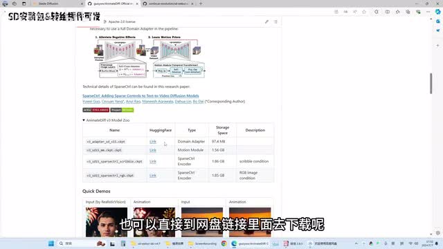 展开参数之后,我们可以看到这边有一个模型的animated diff它最核心的其实也就是这个模型了。通过这个模型可以保证画面的一致性和连续性。那这个模型的话呢,你可以到animated diff的官网上面去进行下载。在github和hugging face上面都有,我会把这个链接放出来。当然我也会把下载好的模型上传到网盘里面,有有需要的小伙伴也可以直接到网盘链接里面去下载的那这些链接呢我都会放在视频的简介里面有。有需要的小伙伴直接去下载就ok了。这个时候如果你已经下载好了模型,那你就来到s d web u i的根目录里面,然后看到extensions文件夹,也就是插件文件夹。然后这个时候你就能看到你的animated dif文件夹,双击打开,然后看到这里有个model文件夹,双击打开并且把你下载好的模型全都放到这个里面,然后回到s d web u i界面,然后在这点一下小小的刷新。