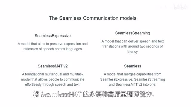大家好,今天我们来介绍meta i近日推出的seamless communication系列模型。这些a i翻译模型旨在弥合和语言之间的鸿沟,实现更加自然的交流,包括similar expressive无缝表达模型,能够在翻译中保留语言的风格、语气、语速、韵律等差异。