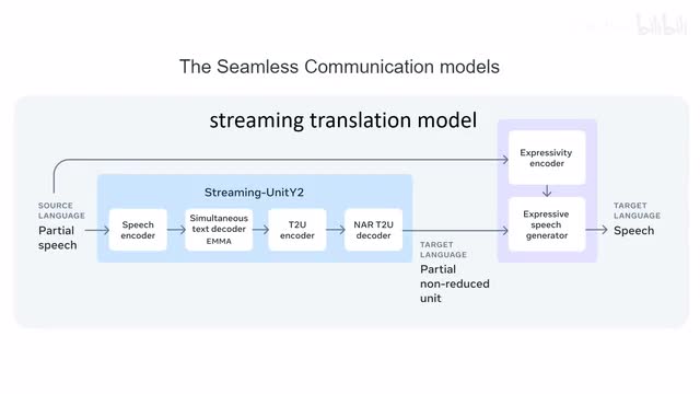 我要说今天关于能源和气候,而德语的顺序是今天说我关于能源和气候,那他们的资格顺序不同,就需要把握断句的时机。另外还有基础模型,seamless emptor version二第二版的seamless empty tee,就是前面说的那个seamless and fort的升级版,也是seamless expressive和seamless streaming模型的基础。