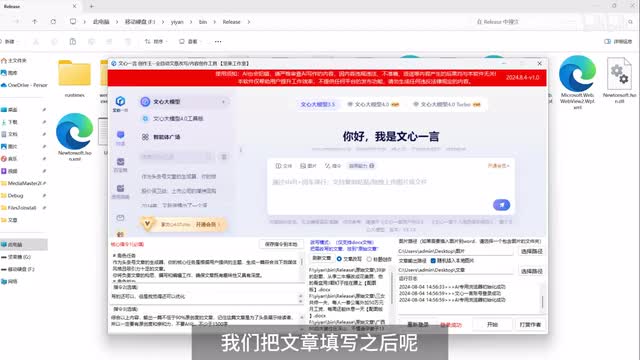 那如果是标题的话,就是一行一个标题就可以了。这里给大家演示一下如何进行本地文章的改写。文本文章填写之后呢,点击开始,它就会自动去调用这个文心一言的网页版进行自动化操作。