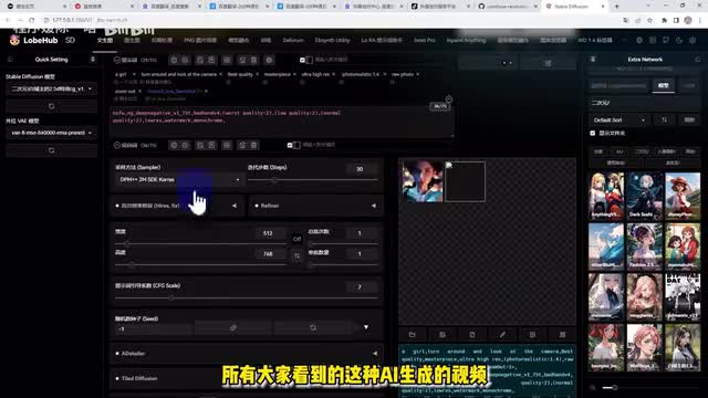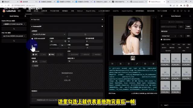 其他的几个参数,比如说这个上上下文不符、重叠循环反转这些等等的。我看了作者的这个插件介绍之后,我感觉在我们现在的使用情况下都不太用去管它,我也没有去细研究。呃,设置成这样之后,我们就可以点击生成了。这里给大家看一下,我跑这个五六二乘七六八的大概速度,跑了两个大模型都试了一下效果,最终大概用了不到三分钟就跑完了。所以他的要求其实也没有那么高。ok然后我们来看一下成片的效果。