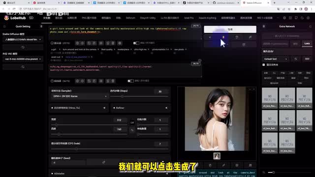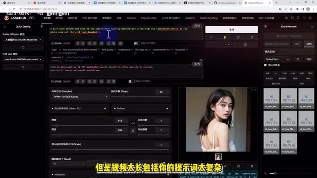 ok装好之后呢,我们就来看一下使用方式。首先我们可以直接在文生图当中通过文字控制来生成视频。在上方的提示词当中呢,我们尽量写的简单一点。比如说我们可以写。一个女孩。转身看向镜头。