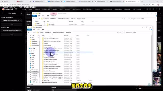 当然这是第一步。第二步我们需要把它的模型给放进来。模型呢我也已经打包好了,我们在模型这里呢可以找到两种模型,一种是主模型,我们把它放在刚才的extensions里面,找到我们这个。的插件文件夹,然后点击进去有一个model,我们把这个主模型放到这里就可以了。另外有一些运动模型,这个模型呢是用来控制镜头的移动的。我们直接把它丢到laura里面,跟laura的调用方式也是一模一样的。