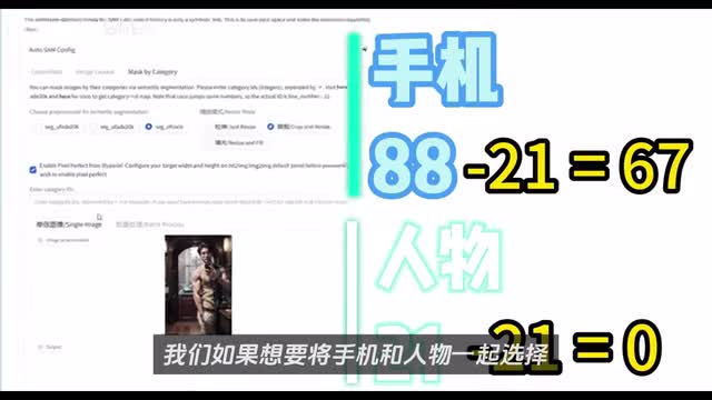 我们就以coco为例,勾选完美像素匹配,然后上传我本人的帅照,可以看到这张照片有人和手机。我们在coco的map关系中可以查到手机对应的行数是八十八,人物对应的行数是二十一。所以我们如果想要将手机和人物一起选择,就需要输入零加六十七之后点击预览。这里根据不同的显卡性能和不同的输入图片。预览图生成的时间会有所差异,但是相对于单张图片的处理,auto s a m的处理速度确实会慢一些。