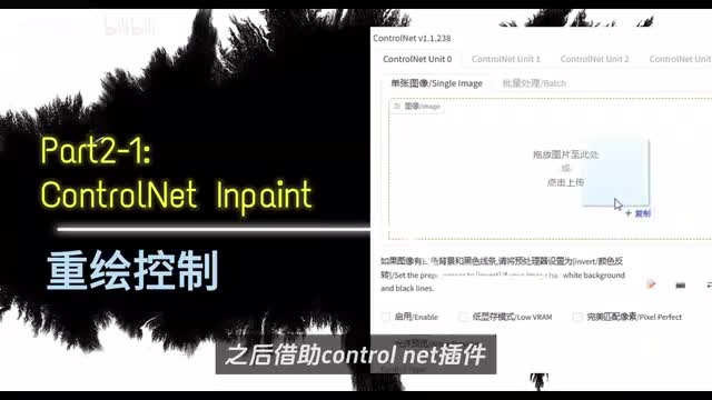 这期间我们可以先勾选上这个选项,复制到图生图重绘上传蒙版和control net重绘,等待分割完成。我们可以看到已经将人物和手机作为一个整体,从背景完全分离出来了。之后点击切换到局部重绘上传。然后来到control net,勾选启用,勾选完美像素匹配。如果你的显存低的话,记得勾选低显存模式。