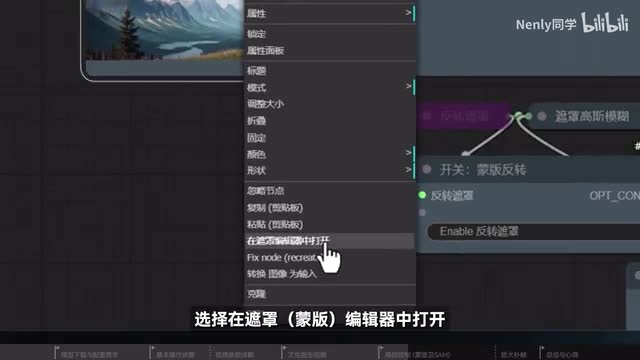 而在这种强风格属性的作品里,s v d同样可以给你惊喜。看来s v d跑一跑,一个水墨流转、山水变换的效果也就做出来了。然而使用s v d出图的一大难点在于,它的动态内容某种程度上是不可控的。你想让它动哪里动什么,其实现阶段还是比较难去控制的。所以要获得一个令人满意的结果,我们总是需要反复收看,然后反复翻车。不过得益于conf u i里各种功能强大的自定义节点,我们可以用一些较为有效的手段控制生成动态内容的区域,从而提高视频的可塑性。这样你用它生成的视频就会更加听话了。首先。