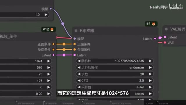 相似之处。首先我们在最左侧的check point加载器这里加载刚刚下载下来的s v d模型。随后在下方的图片加载器处输入一张想要让它动起来的初始图片,可以直接从电脑上的文件夹把图片拖拽进来。这张初始图片的尺寸最好和你最后生成的视频尺寸比例保持一致。那视频的尺寸在哪里调整呢?看到右边这个条件节点,在这里你可以设置视频的宽度、高度和帧数、帧率的基本选项,其中视频尺寸我会推荐按照默认设置的幺零二四乘五七六来。因为s v d模型是在这个尺寸的视频上训练的,所以我们也应该尽可能把初始图像裁剪到十六比九的比例上。视频的帧数决定了视频的总长度,同样会根据你选用的s v d模型而已。原版的最佳选择是十四帧,x t版则是二十五帧,而f p s代表每秒播放的帧数,可以维持默认六不变。