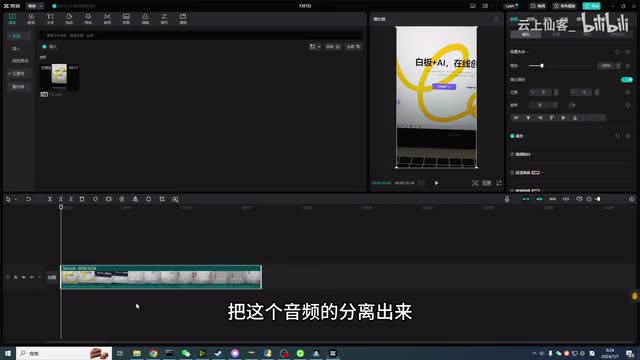 拖进来之后,我这里随便播一个吧。有时候拖进来之后,然后你把它分离音频。把这个音频给分离出来,然后分离出来之后直接删掉。然后导出然后导出之后,我们把这个视频导出的勾给去掉,只勾选这个音频导出。