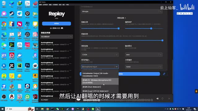 是啊,其实也听不出来太大的区别。然后这个麦克风输入是什么呢?就是你要自己去唱歌,然后让ai来翻唱的时候才需要用到。那比如说我选择一下我的麦克风,然后我来翻唱。然后我来放一段分唱一段让爷来给我们翻唱。