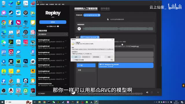 跟大家说一下我们这个ai翻唱是怎么做的啊。首先我们下载好这个replay之后,我们是一个这样子的压缩包。然后这个压缩包我们直接给它解压出来。解压出来之后它里面会有一个这样的点e x e,你直接双击它打开。