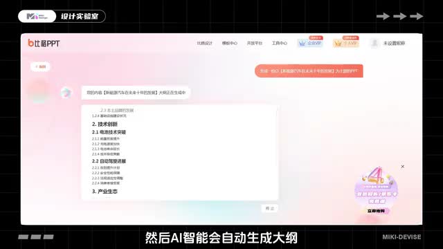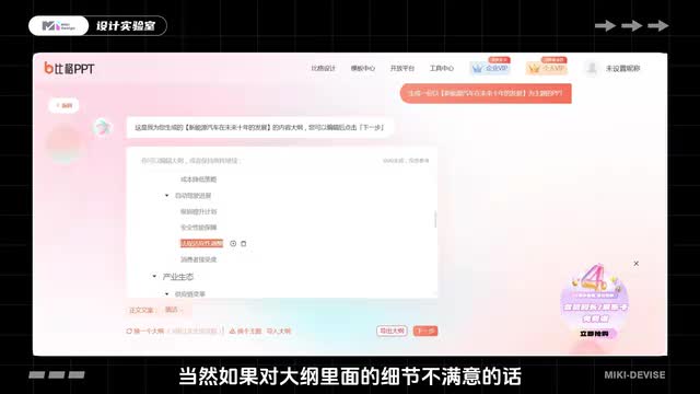 我们点击上方工具栏中的一个p p t,就可以看到一个a i对话框。