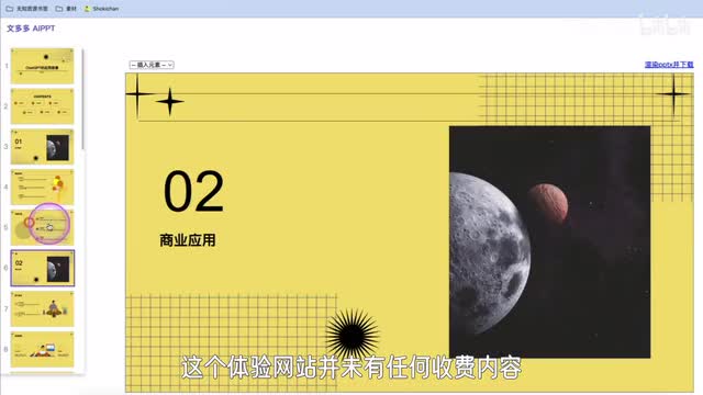 右上角直接下载就行了。测试了两个这个体验网站,并未有任何收费内容,完成的p p t质量美观度都足够你交差了。