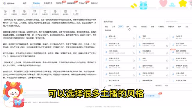 复制进去,然后呢点击更多主播。这里面的话呀可以选择很多主播的风格。我们可以选择一个自己喜欢的主播,然后就可以建设成配音了。