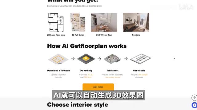 第四个,get floor plan, 你知道吗?其实你可以帮别人做户型效果图,只需要上传户型图a就可以自动生成三d效果图,即使是这么丑的户型图也能自动生成,而且你还可以查看房间的内部布局,再也不用雇专业人员了。