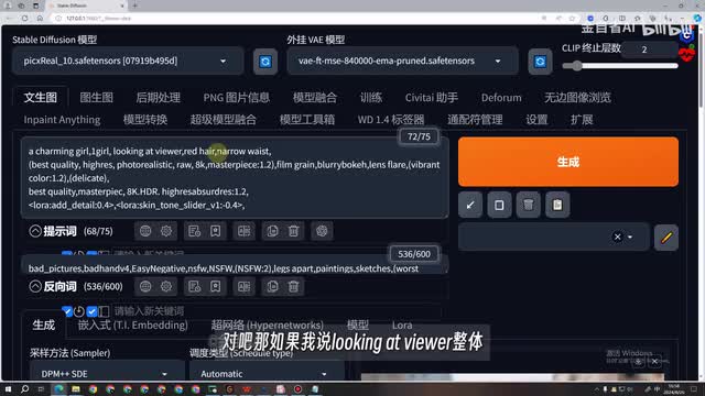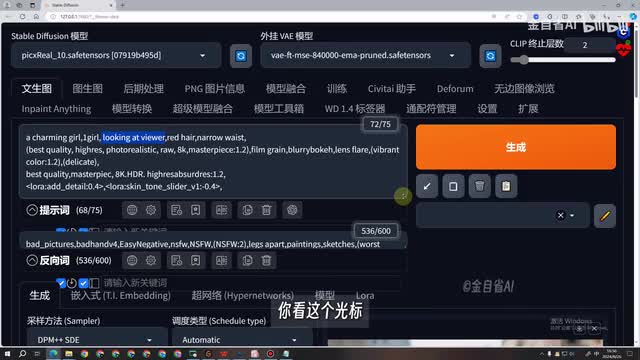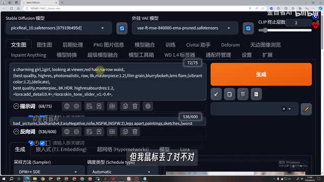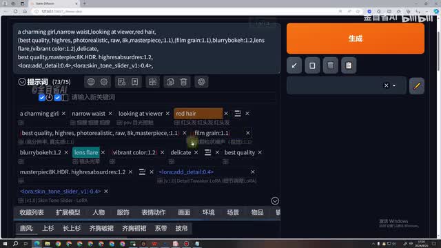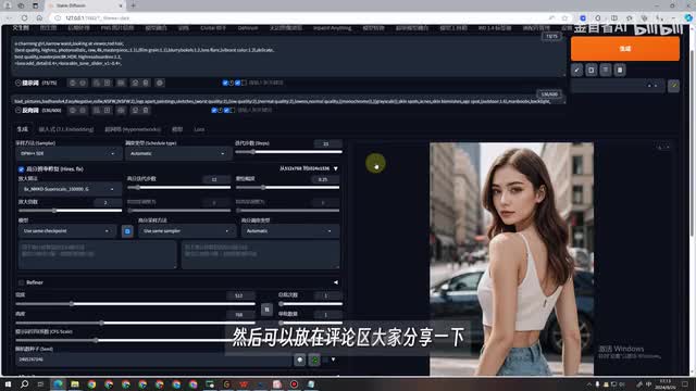 啊,对吧?上下选调了,然后下下面是一个lower模型。这个lower模型这这这样的一些词这样一些词我们直接按住control上下就可以啊。o k现在我们提示词调完了,然后我要生成图片,但我鼠标丢了,对不对?我就剩个键盘了,那我直接看车。回车control加回车啊,这个生成键快捷键是control加回车o k那假如这些词你都不想用键盘去去去这么搞啊,就想用鼠标也可以。
