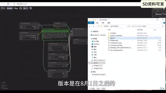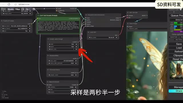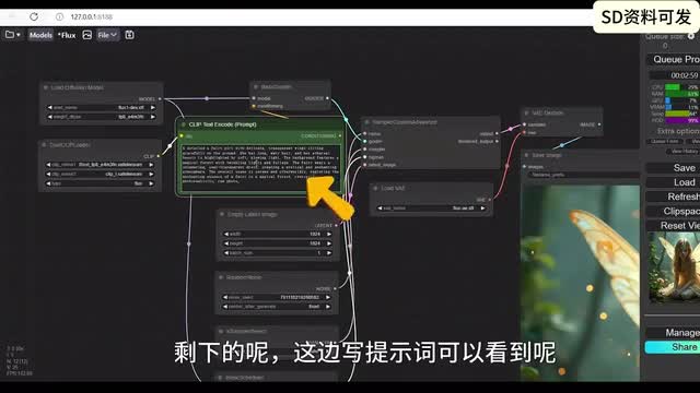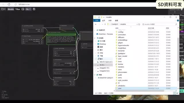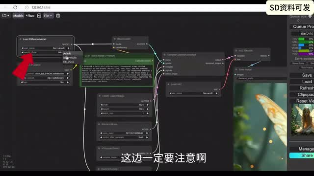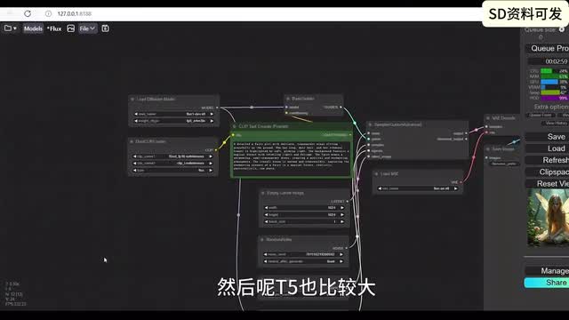 可能用过s d三的朋友呢,这边已经都有了,k l和七五都放在相应的目录。所以为什么说flux是个大的呢?因为flux unit one有二十二g再加上click那边t五那边车v e一共有三十多g可能呢是我们开源能下到的图文生图的模型里面最大的一个。然后我们再回到康复u i这边呢,嗯康复u i呢一般都会给大家提供这样一个图片,其实图片呢就是包含着流程在里面的,大家把这个图片呢另存为,然后呢在康复u i这边呢再把那个图片拽进来,那就会呢出现这个流程。那这个流程呢,和我们一般的流程呢差不多。