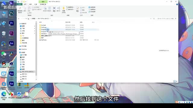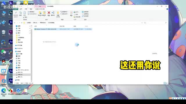 这个时候呢,我们可以回到界面去看一下是否有这个软件的标识,一般都会有。那没有的话,这里讲解一下解决的办法。我们点击此电脑到c盘,我们找到这个文件,点击adobe文件就可以看到我们刚刚安装的这个p r零二四。然后双击进去,找到下面的这个标识,鼠标右键创建快捷方式。